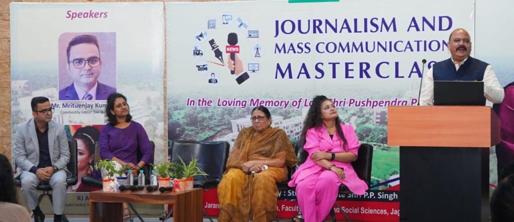 कार्यक्रम के अंतर्गत “पत्रकारिता और रेडियो में चुनौतियां एवं अवसर” विषय पर मास्टरक्लास का आयोजन किया गया, जिसमें प्रमुख वक्ता के रूप में वरिष्ठ पत्रकार मृत्युंजय झा (कमोडिटी एडिटर, ज़ी बिज़नेस) और आरजे अनादि उपस्थित रहे। दोनों ने विद्यार्थियों के प्रश्नों के उत्तर देते हुए मीडिया के बदलते स्वरूप और नई संभावनाओं पर विस्तार से चर्चा की।