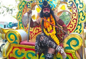 संस्कार रामलीला मंडली के कलाकारों ने बिखेरा धार्मिक रंग, परशुराम स्वरूप में रथ पर विराजमान रहे शिक्षक टंकेश्वर दुबे